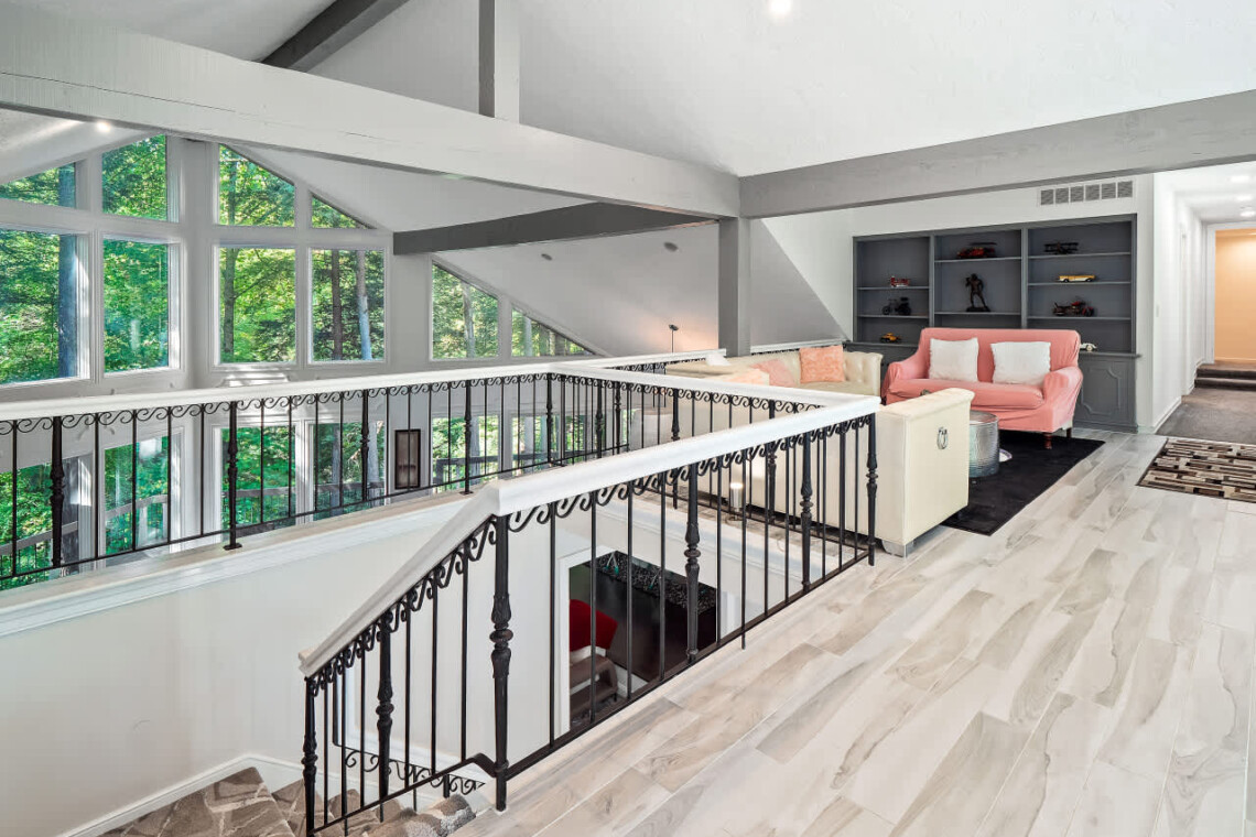 Upstairs, you’ll find four additional bedrooms—three with king beds, one with a queen, and one with a full—all beautifully furnished for restful nights.