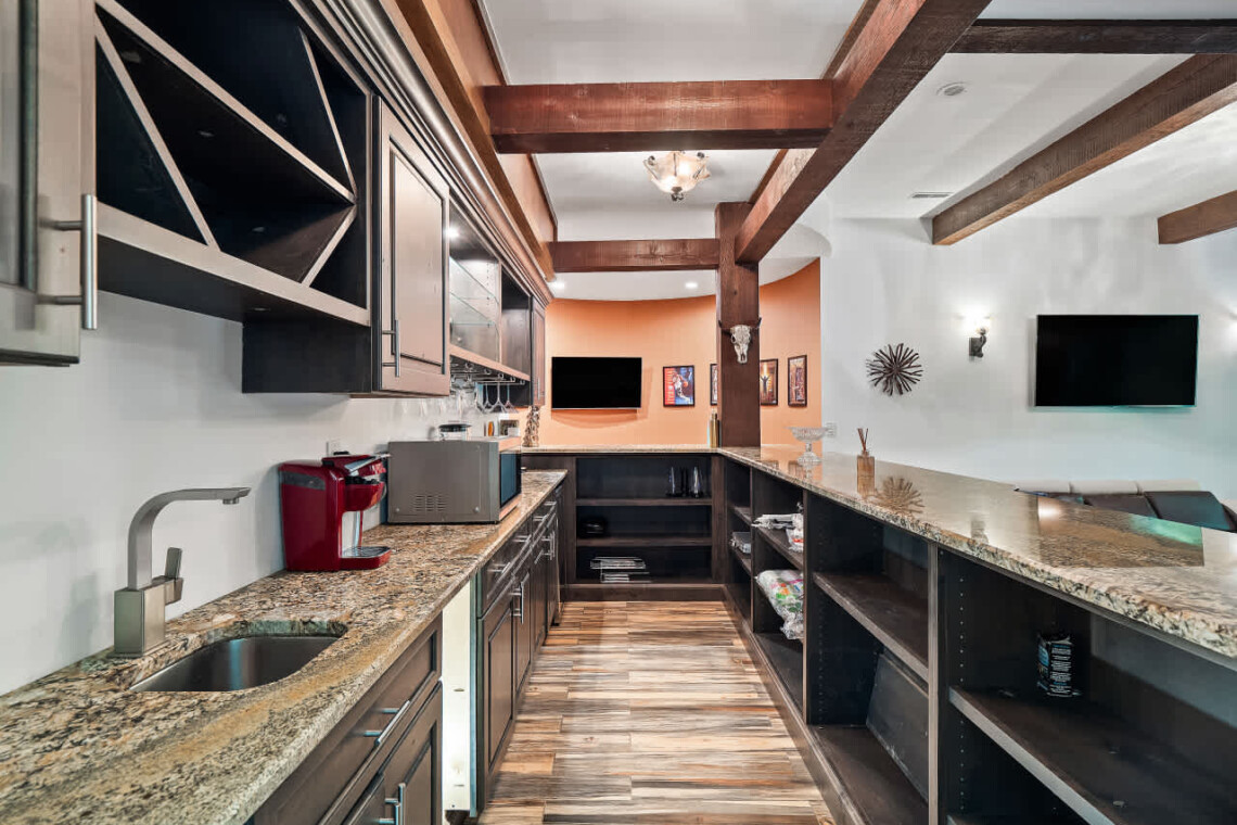 -Gourmet kitchen with large island, double ovens & beverage bar (🔥 Note: Only 3 of 5 burners are working, but all are safe to use. 🍳)