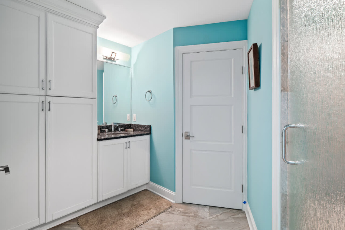 There are 2 steam showers → one in the master bathroom + one on the lower level by the theater.