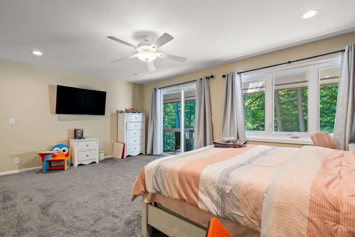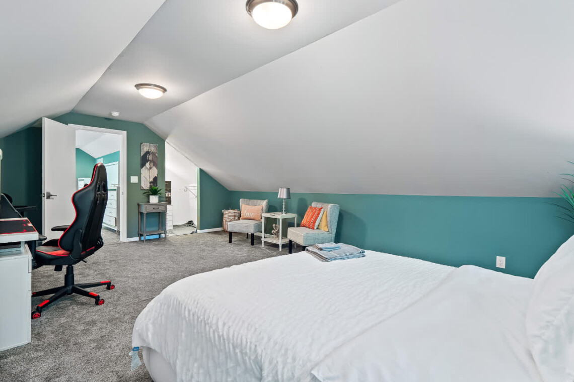 Bedroom 3: Includes a king bed, TV, deck access, and connects to Bedroom 4, which features a full bed (please note Bedroom 4 is only accessed through Bedroom 3).
