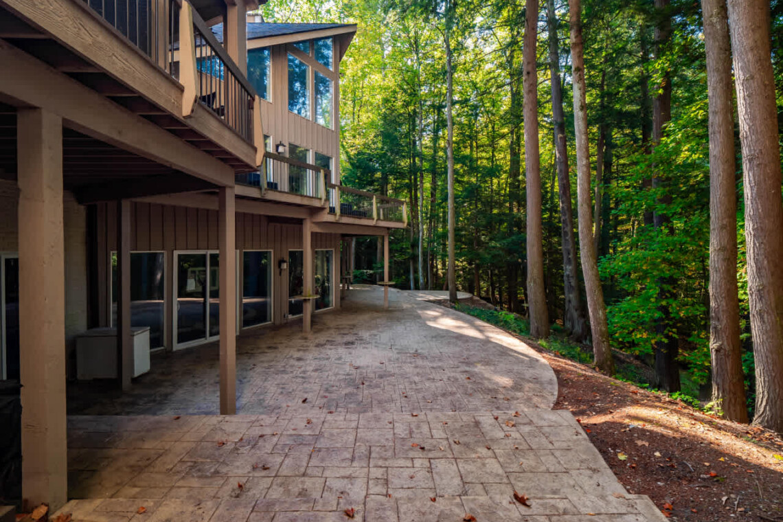 -Expansive deck & patio overlooking a private wooded lot