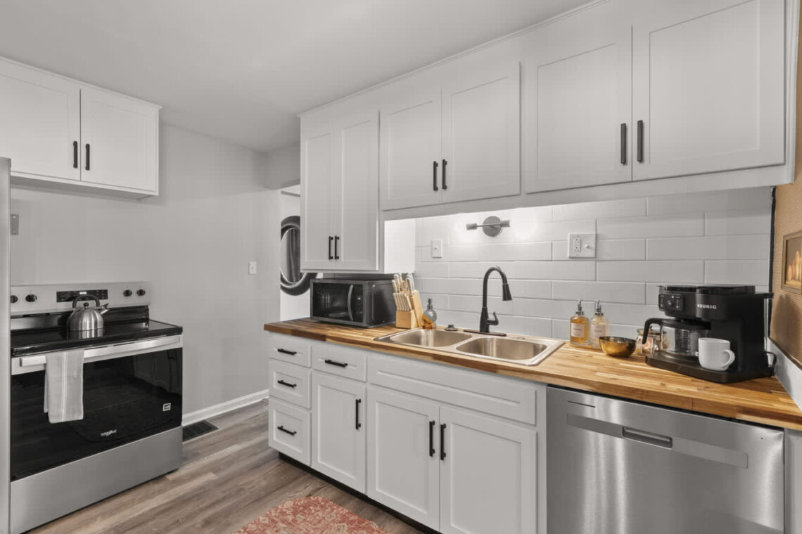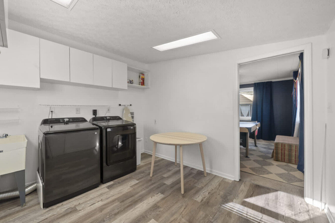 The home’s open living spaces are perfect for gathering and unwinding after a day on campus or exploring Columbus. The fully equipped kitchen includes all cooking essentials and a dedicated coffee bar, ideal for early mornings, tailgate prep, or relaxed starts to the day.