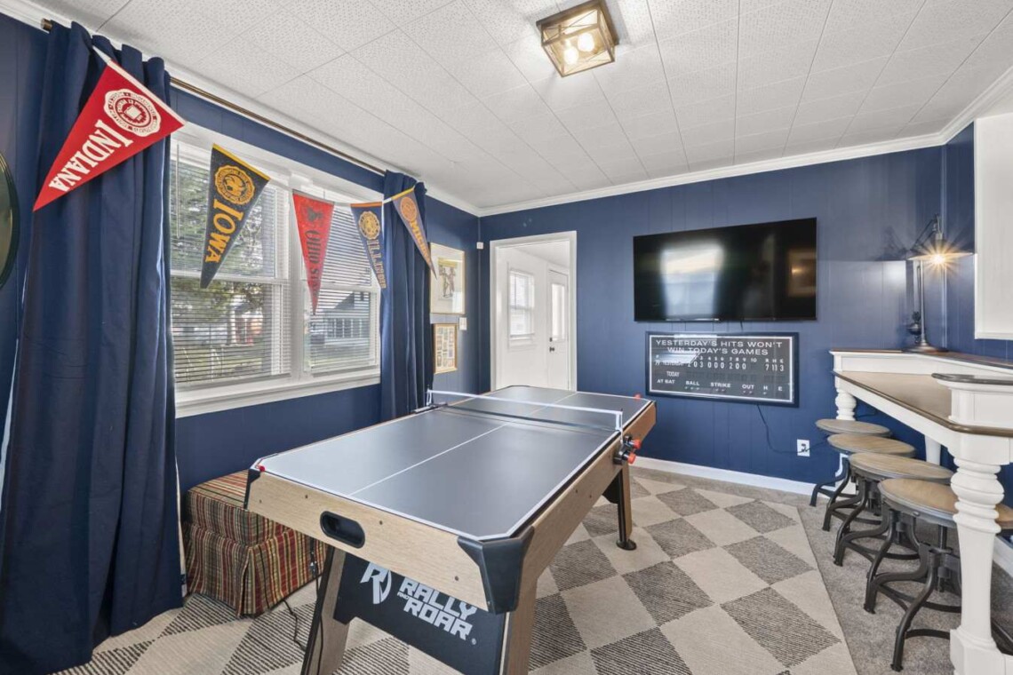 Newly designed 4BR/2BA home sleeping 12, less than ½ mile from Ohio State University and just over a mile from Ohio Stadium. Features a game room with ping-pong, air hockey, and retro arcades (Golden Tee, Pac-Man, Galaga), a coffee bar, fully fenced yard, and a park right next door—perfect for game days, families, and group stays.