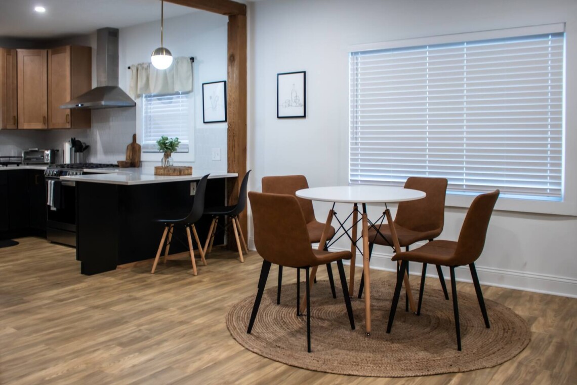 The kitchen is fully equipped for preparing meals at home, whether you’re cooking simple breakfasts or full dinners. A dedicated dining area provides space to gather, share meals, or plan the day ahead.
