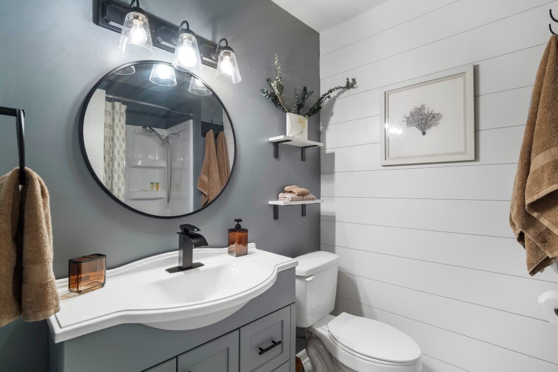 Four bedrooms provide ample space for rest. The master suite boasts a king bed and ensuite bath with a walk-in shower. Another bedroom features a king bed, one offers a queen bed, and the last has a twin trundle bed. A second full bathroom with a tub-shower combo is conveniently located on this level.