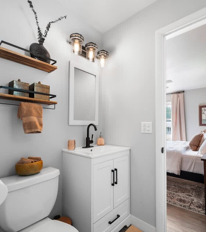 The property is equipped with a Ring doorbell, exterior security cameras, smoke and carbon monoxide alarms, a fire extinguisher, and a first aid kit. Self check-in with a smart lock simplifies your arrival.