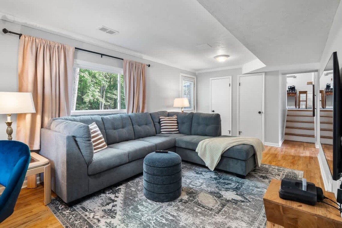 Perfect for family gatherings, group activities, or a peaceful retreat near shopping and highways, this pet-friendly home offers a delightful blend of entertainment and relaxation across its multiple levels.