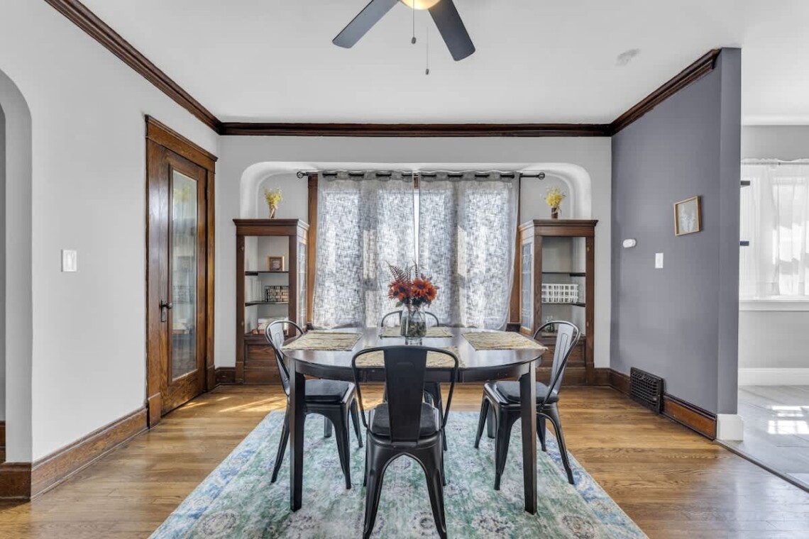 ⢠Dining Room: Gather around the formal dining table or the built-in bench. Shelves are stocked with board games and fun extras â perfect for game nights, quiet evenings, or family bonding time.