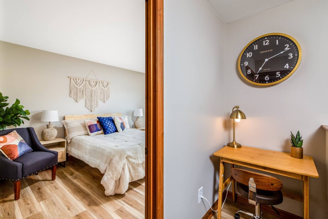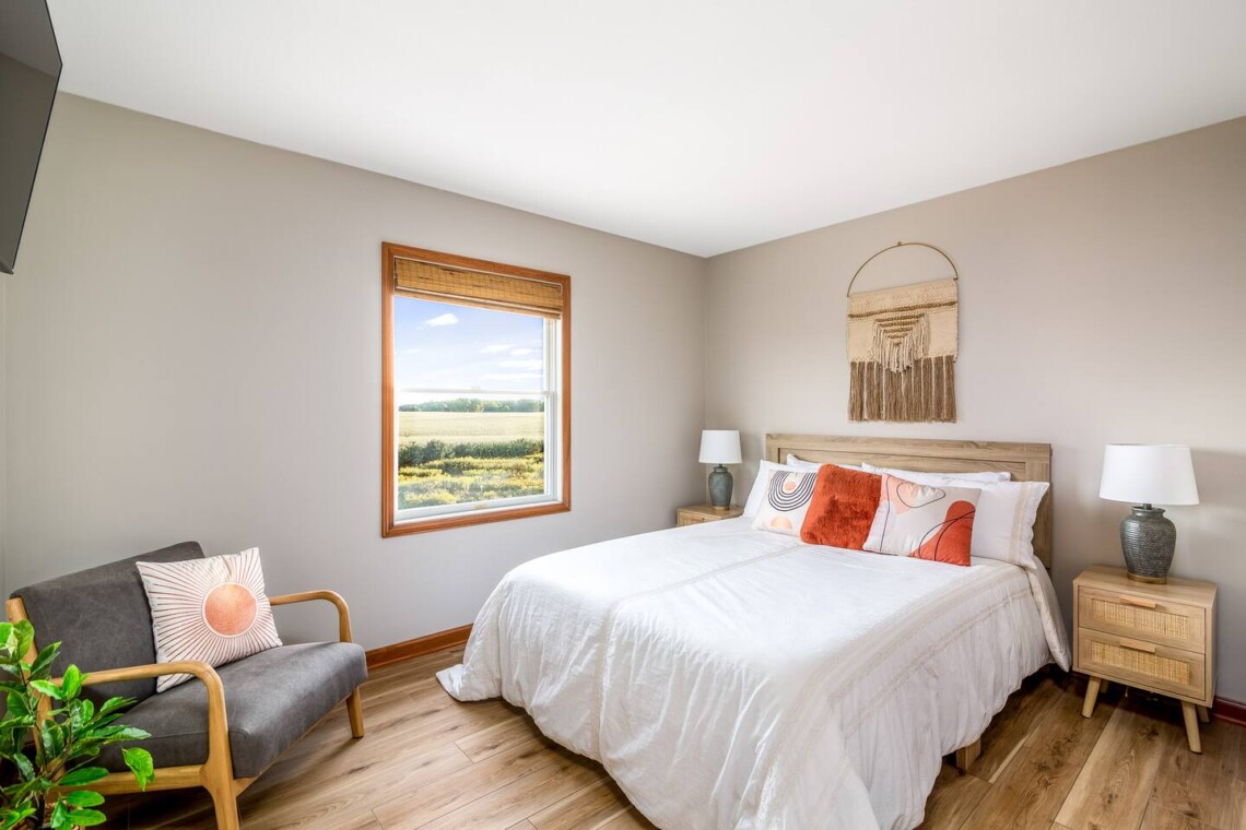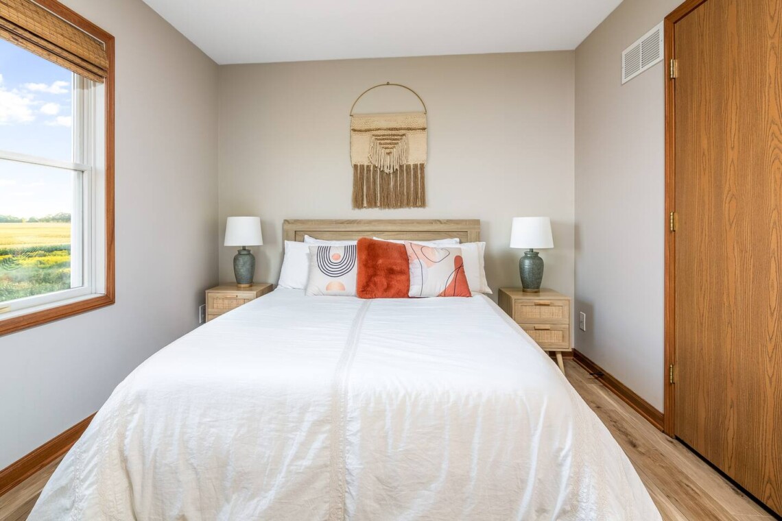 This chic, boho-inspired retreat is a top choice for couples, traveling professionals, and digital nomads! 🏠 Downstairs features an open-concept living area and a fully equipped kitchen 🍳, while the upstairs serves as a quiet sanctuary with two bedrooms and plush, premium bedding. 🛌