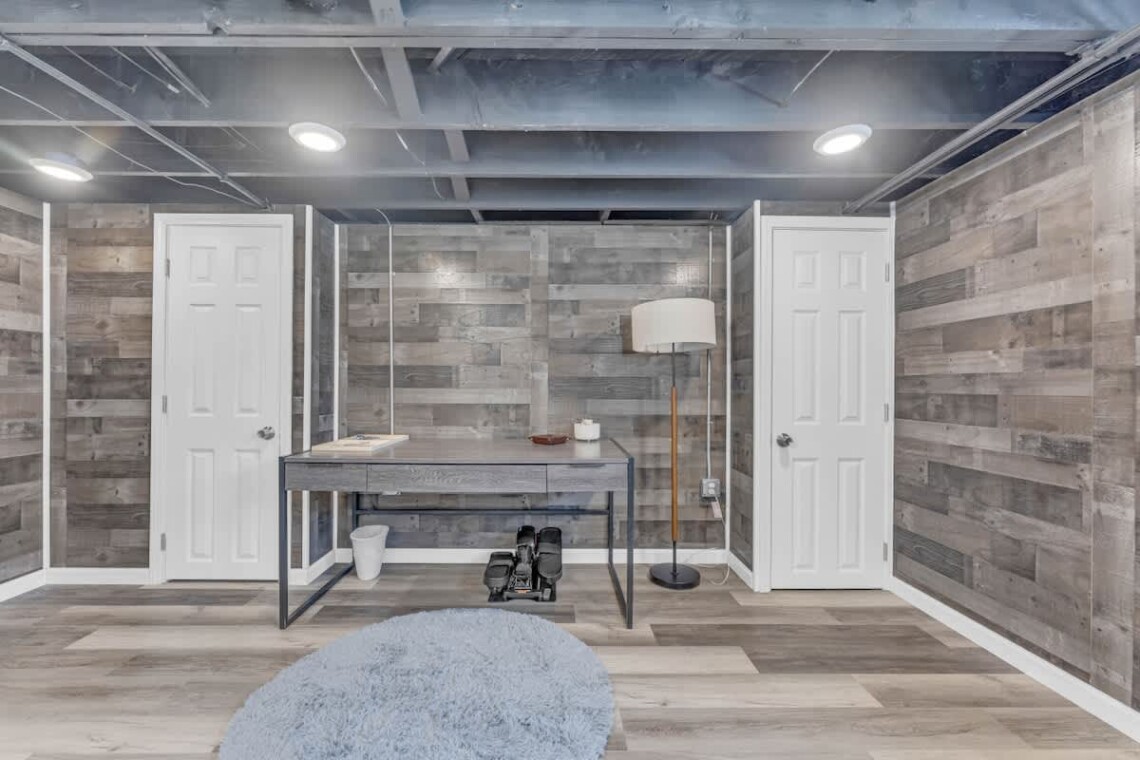 The main floor offers a spacious living room with a Smart TV, and an updated, fully stocked kitchen with everything you need to prepare meals during your stay. Downstairs, the basement rec room includes a desk for remote work, a half bath, and extra space to unwind. A washer and dryer are available for use as well.