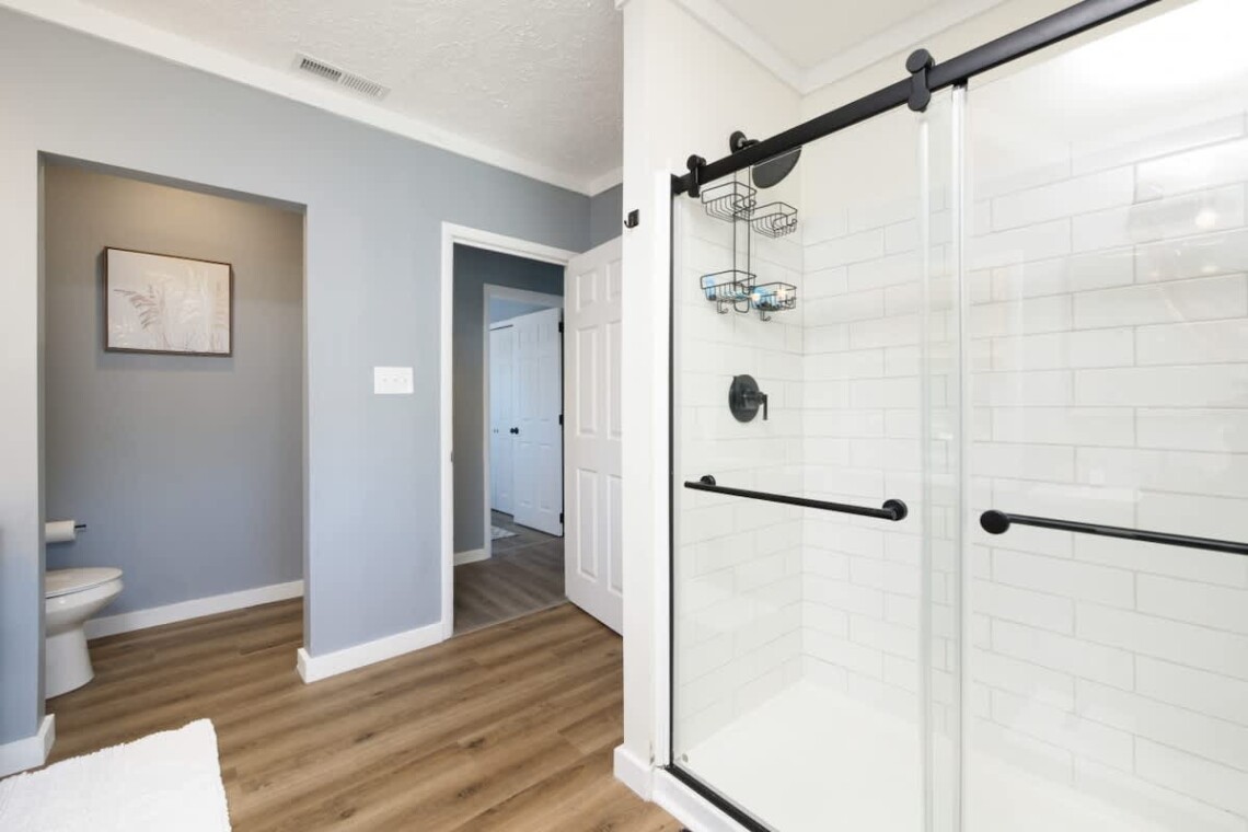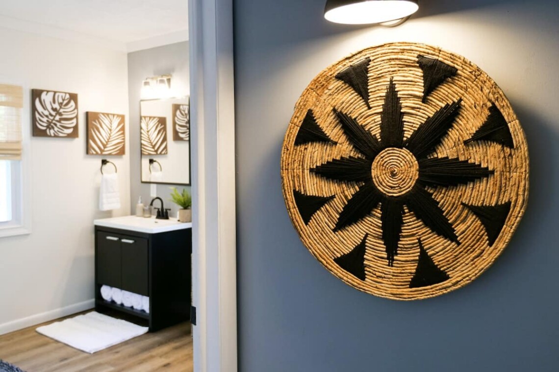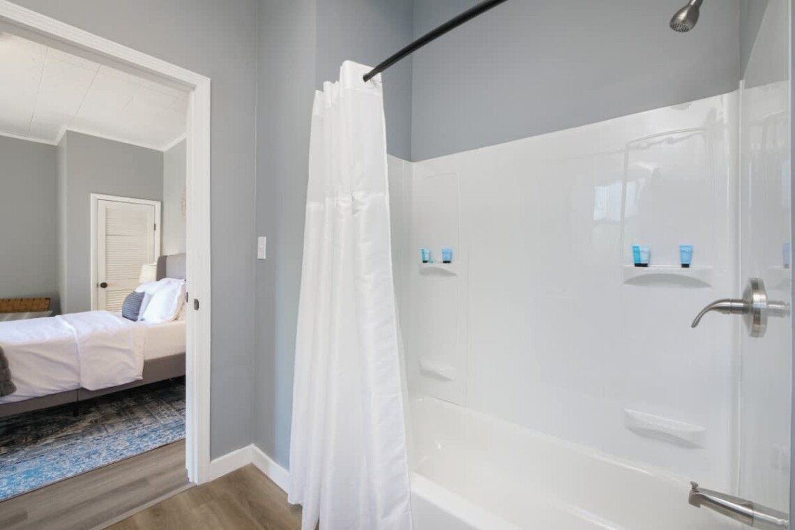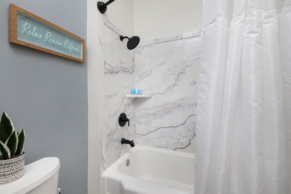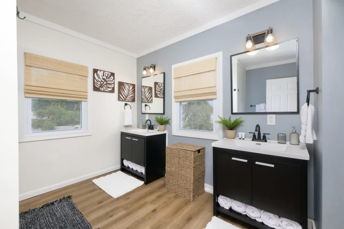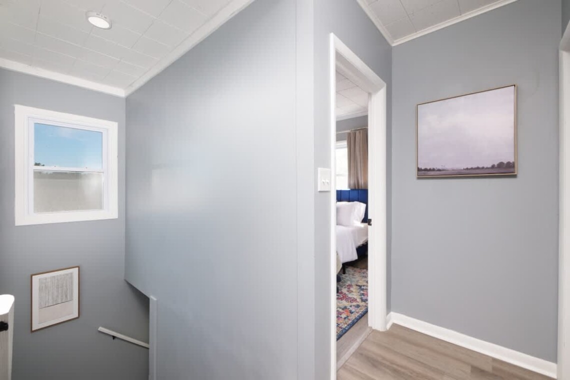 With 5 bedrooms and 7 beds, the home comfortably hosts up to 10 guests. Each bedroom is prepared with bed linens, extra pillows and blankets, and room-darkening shades for restful nights. Closets and dressers provide plenty of storage for longer stays. Three full bathrooms are stocked with towels, shampoo, conditioner, body soap, and other essentials.