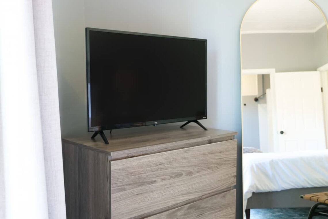 Inside, you’ll find both comfort and connectivity. Stream 4K movies or join video calls with verified fast Wi-Fi (226 Mbps) or plug in with the ethernet connection. A TV and game console provide easy entertainment, while board games are ready for quiet evenings in. A dedicated workspace with a door offers privacy when you need to focus.