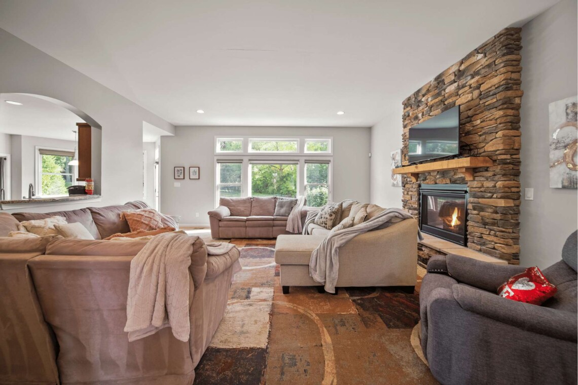 Settle into a space designed for gathering, where mornings begin with coffee at the kitchen island and evenings wind down in the glow of the indoor fireplace. Natural light fills the living areas, and there’s room for everyone to spread out – whether you’re sharing a meal, relaxing with a show, or enjoying quiet moments in your own corner of the home.