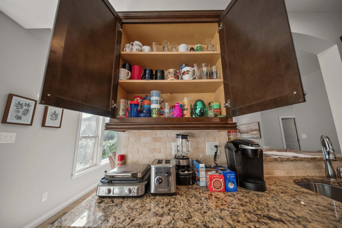 The kitchen is a full kitchen with everything you need to prepare meals at home. You’ll find a refrigerator, microwave, stove, dishwasher, and cooking basics, along with a coffee maker and coffee for easy mornings. A dining table provides a central place to gather, whether it’s a casual breakfast or a shared dinner after a full day.