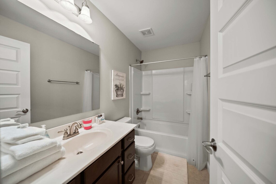 4.5 baths ensure there’s space for everyone to get ready. Each bathroom includes hot water and bathroom essentials. A washer and dryer are available, along with an iron and hangers, so you can settle in for longer stays with ease.