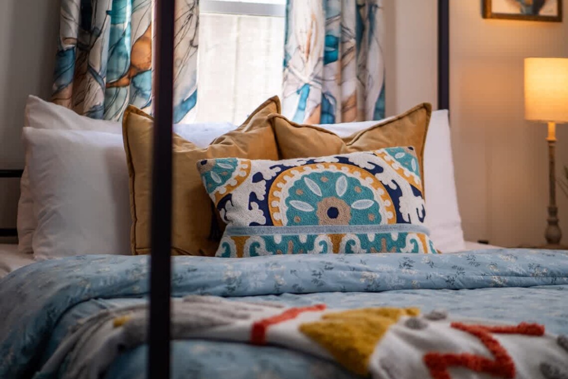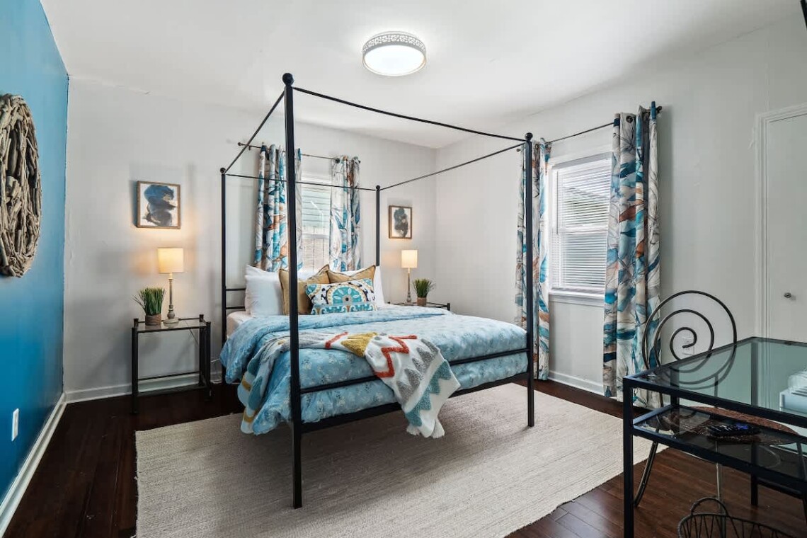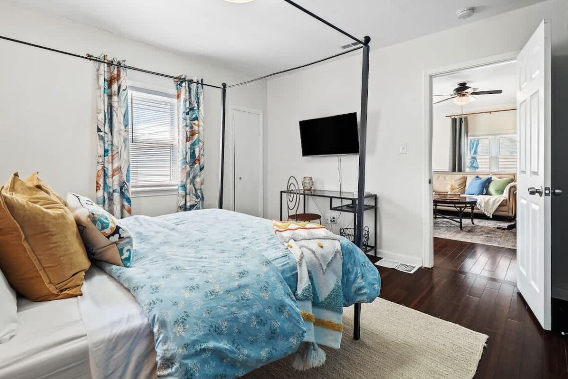 Extra pillows, blankets, room-darkening shades, and cotton linens are provided, along with clothing storage and hangers for your convenience. The single bathroom is designed for comfort and ease.