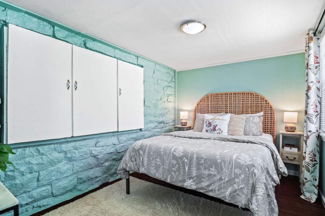 – One bedroom with a queen bed