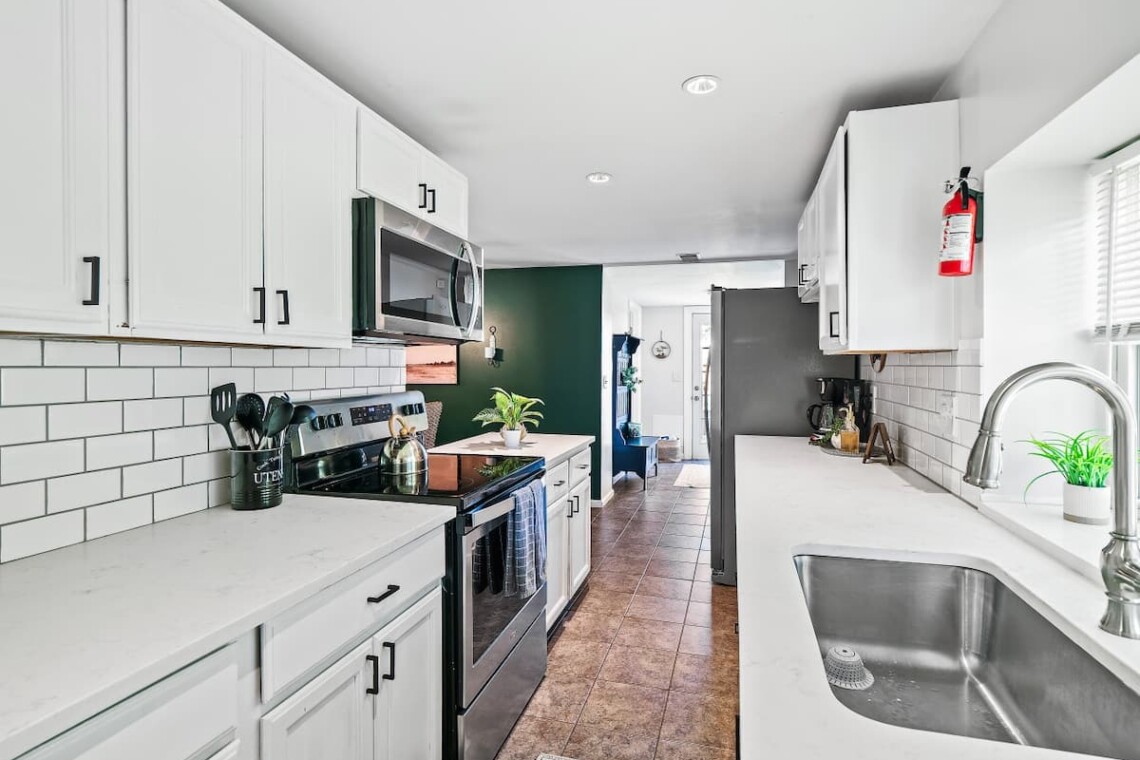 The fully equipped kitchen has everything you need to prepare meals, including: