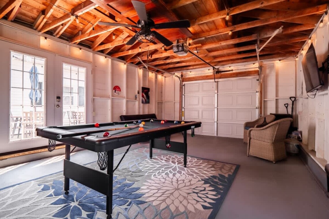 – 🎱 Enjoy the garage lounge with a pool table and TV