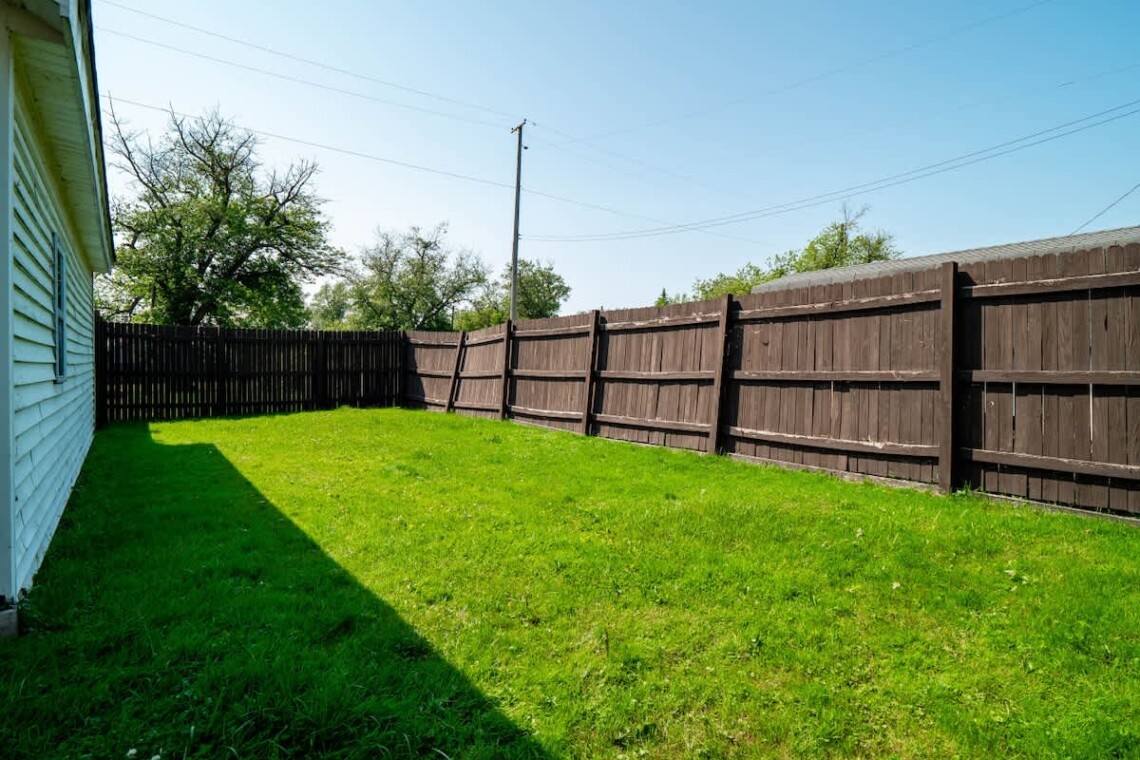 Step outside into a private backyard featuring: