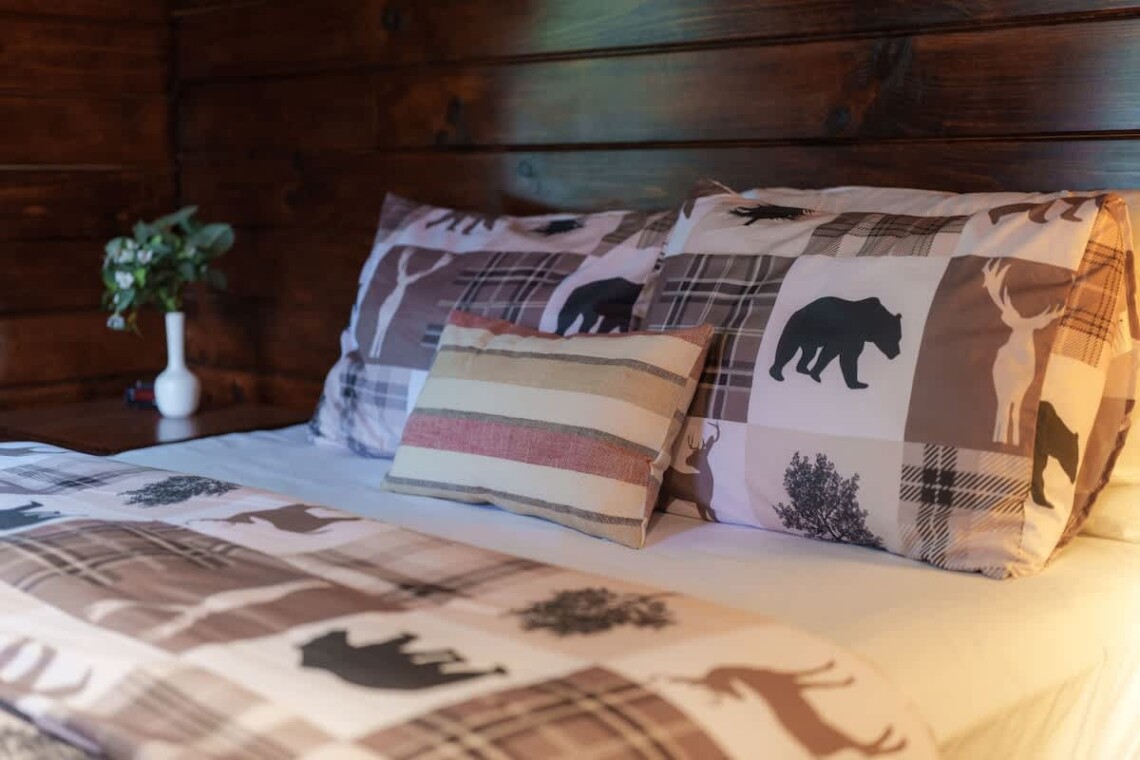 -Two Bedrooms each with a queen bed, comfortably accommodating 4 people, with a pull-out couch that adds 2 extra sleeping spots for larger groups.