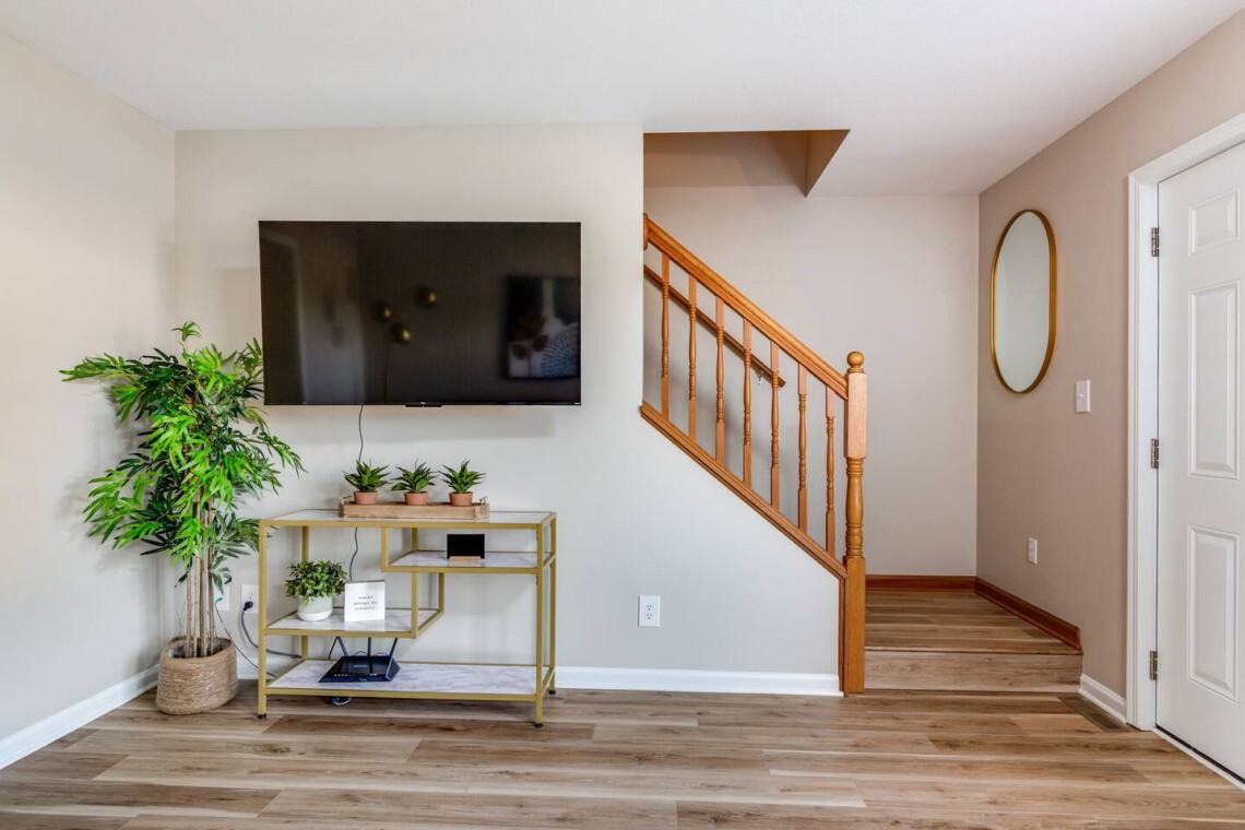 This entire home accommodates up to six guests and includes two bedrooms, three beds, and one and a half bathrooms. The layout is straightforward and comfortable, making it easy for couples, families, or small groups to share the space without feeling crowded. Heating and air conditioning help keep things comfortable through Ohio’s colder months.