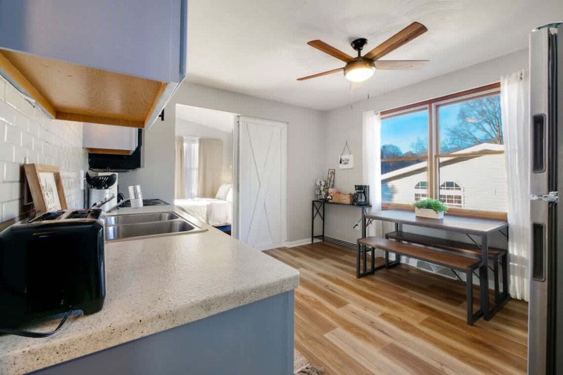 Conveniently, the home is located less than 10 minutes away from Clay’s Park Resort, which features a swimming lake and a plethora of activities for kids that we highly recommend exploring. Additionally, Clay’s Park hosts concerts throughout the year, so be sure to check their schedule before your arrival for a chance to enjoy live music during your stay.