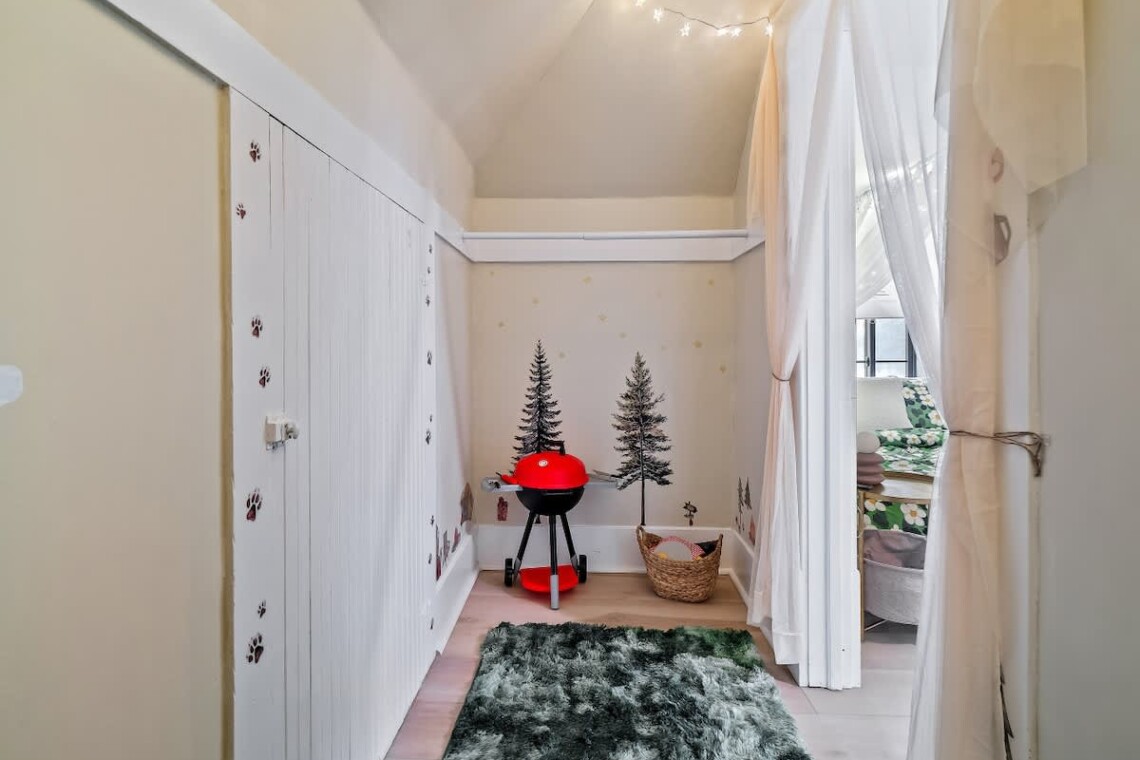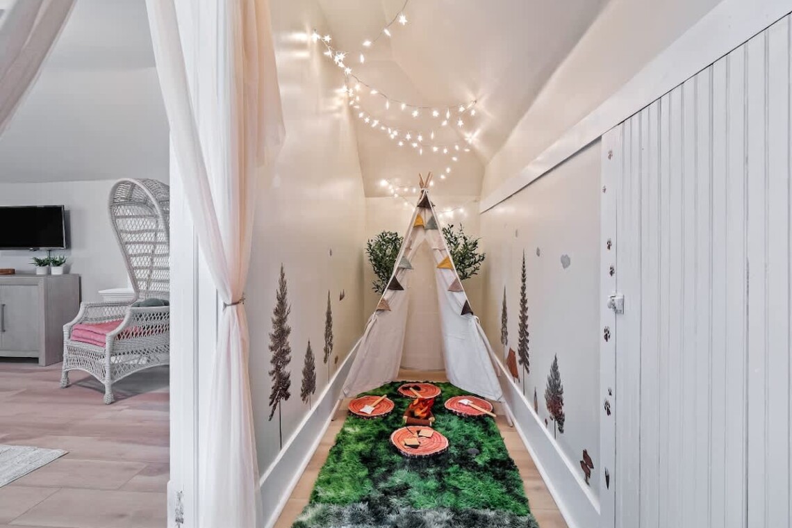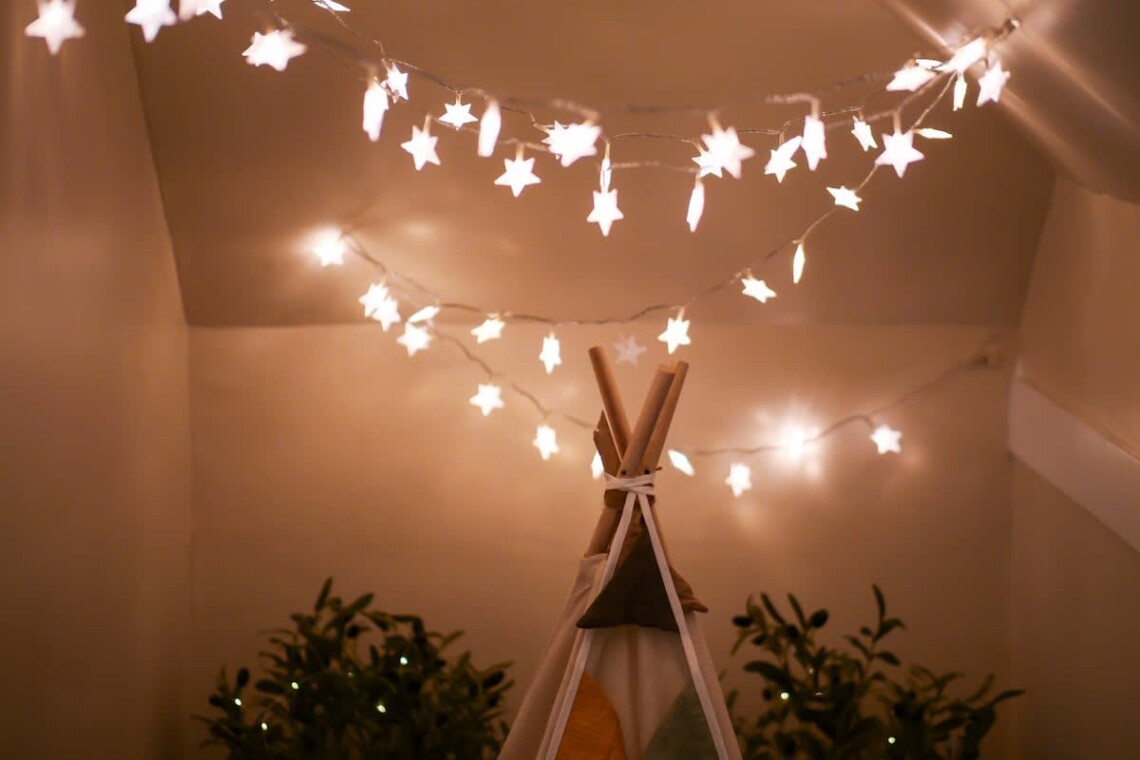 •Whimsical woodland hideaway nook with twinkle lights — a magical touch for little ones