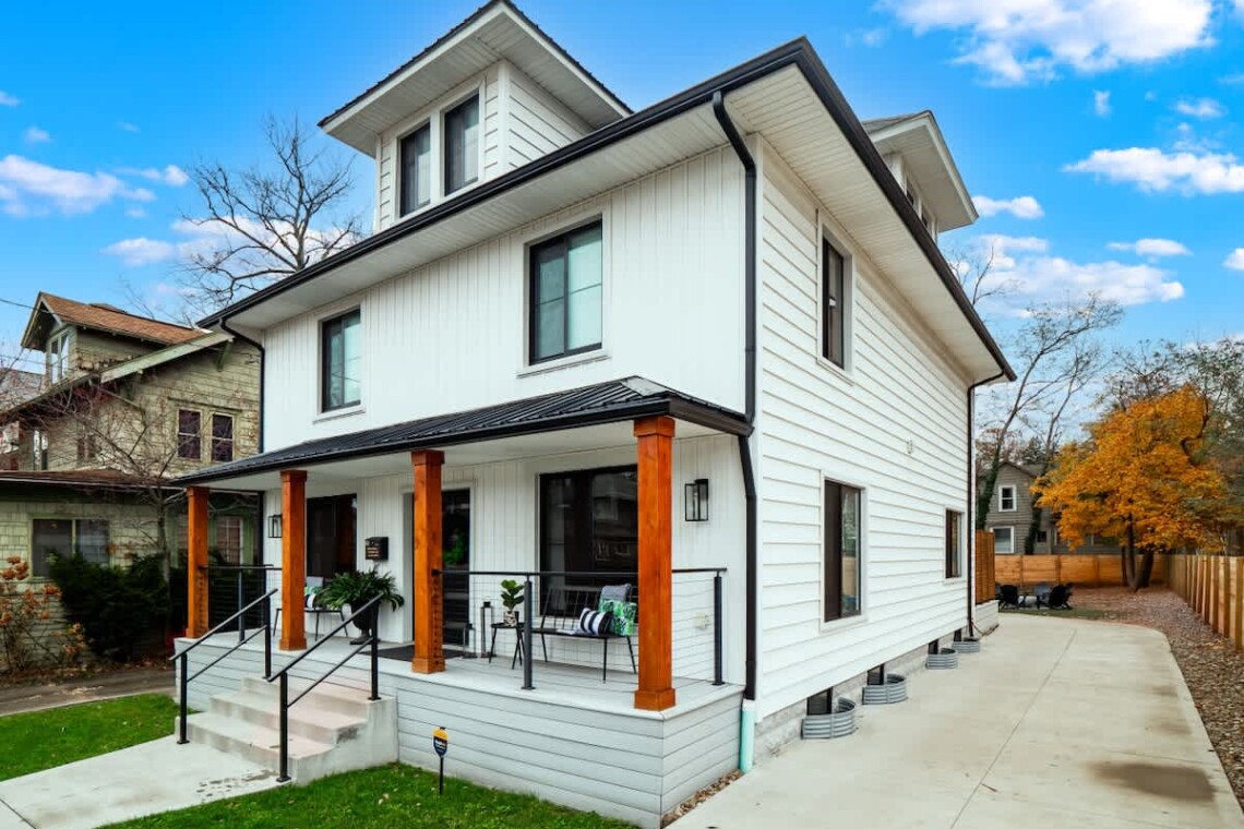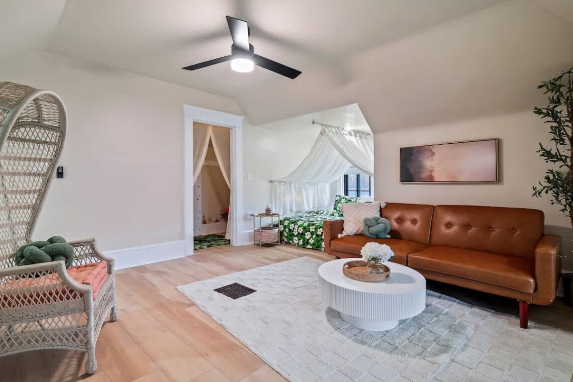 Stylish 4BR, 2.5BA home with cozy living room, pool table, wet bar & coffee bar, plus renovated kitchen and dining for 8. Upstairs: king suite, fun bunk room with slide, queen room, and whimsical attic with 2 king beds. Enjoy the hot tub, firepit, and retro van bar out back—just minutes from downtown Akron!