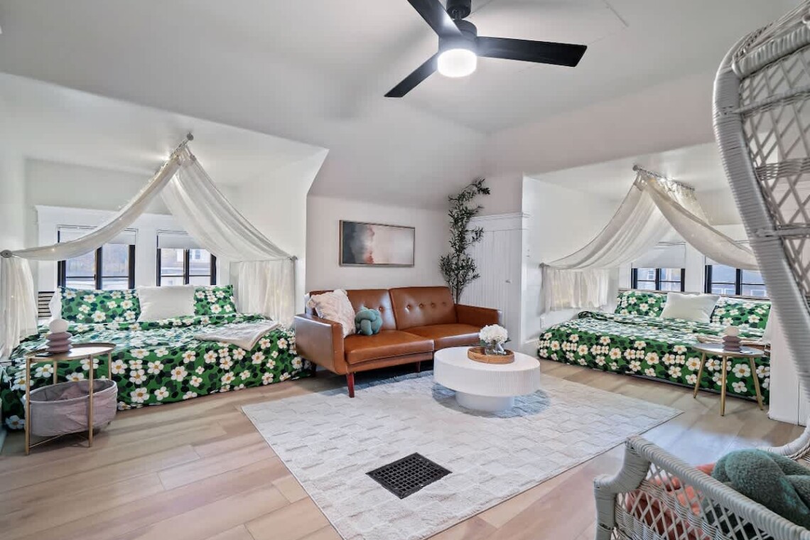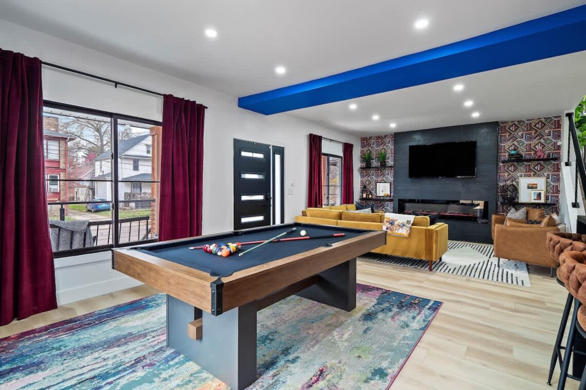 Perfect for families, couples, or groups of friends, this Akron retreat combines modern comfort, playful charm, and one-of-a-kind details. Conveniently located near downtown Akron, restaurants, and local attractions, it’s the ultimate spot to unwind and make memories.