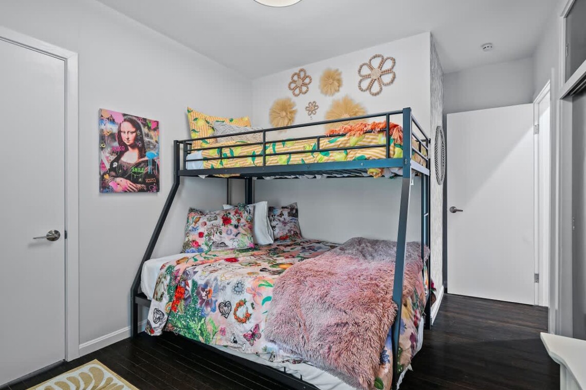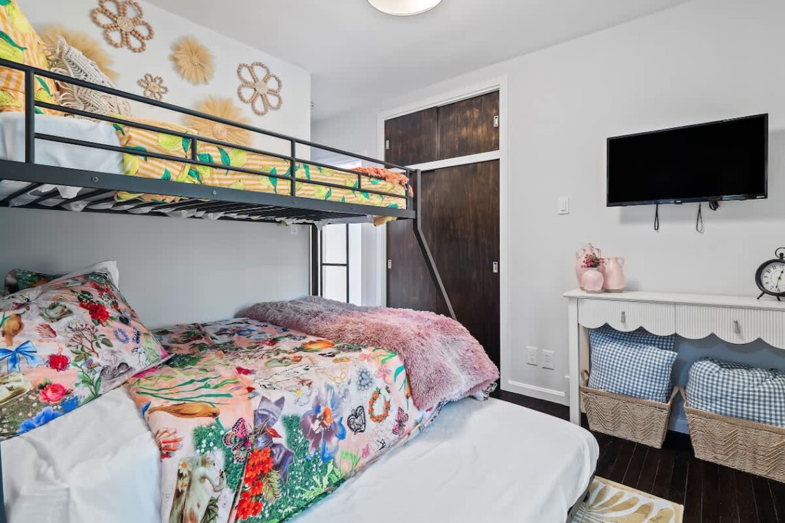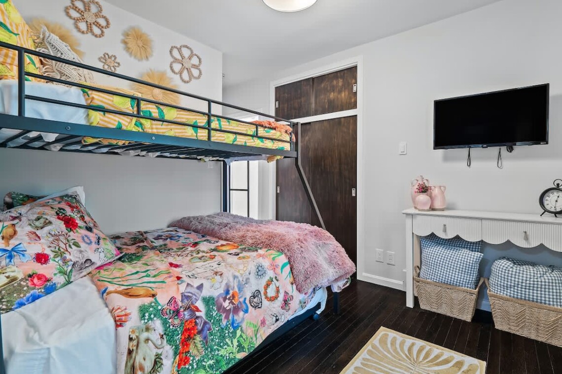 Bedroom 3: Bunk bed with a full on bottom, twin on top, plus an additional twin roll-out and Smart TV.